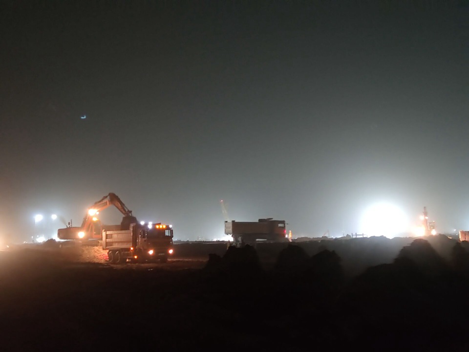 经过大家辛勤的付出,现已建成能容纳300多人的临建及附属配套设施。PE区现场临时道路回填15000m3施工已完成,AIS区域90000m3回填及平整已完成,网控楼开挖及破桩已完工,燃气机房20000m3换填已完成,锅炉房也已完成开挖,正在回填中。