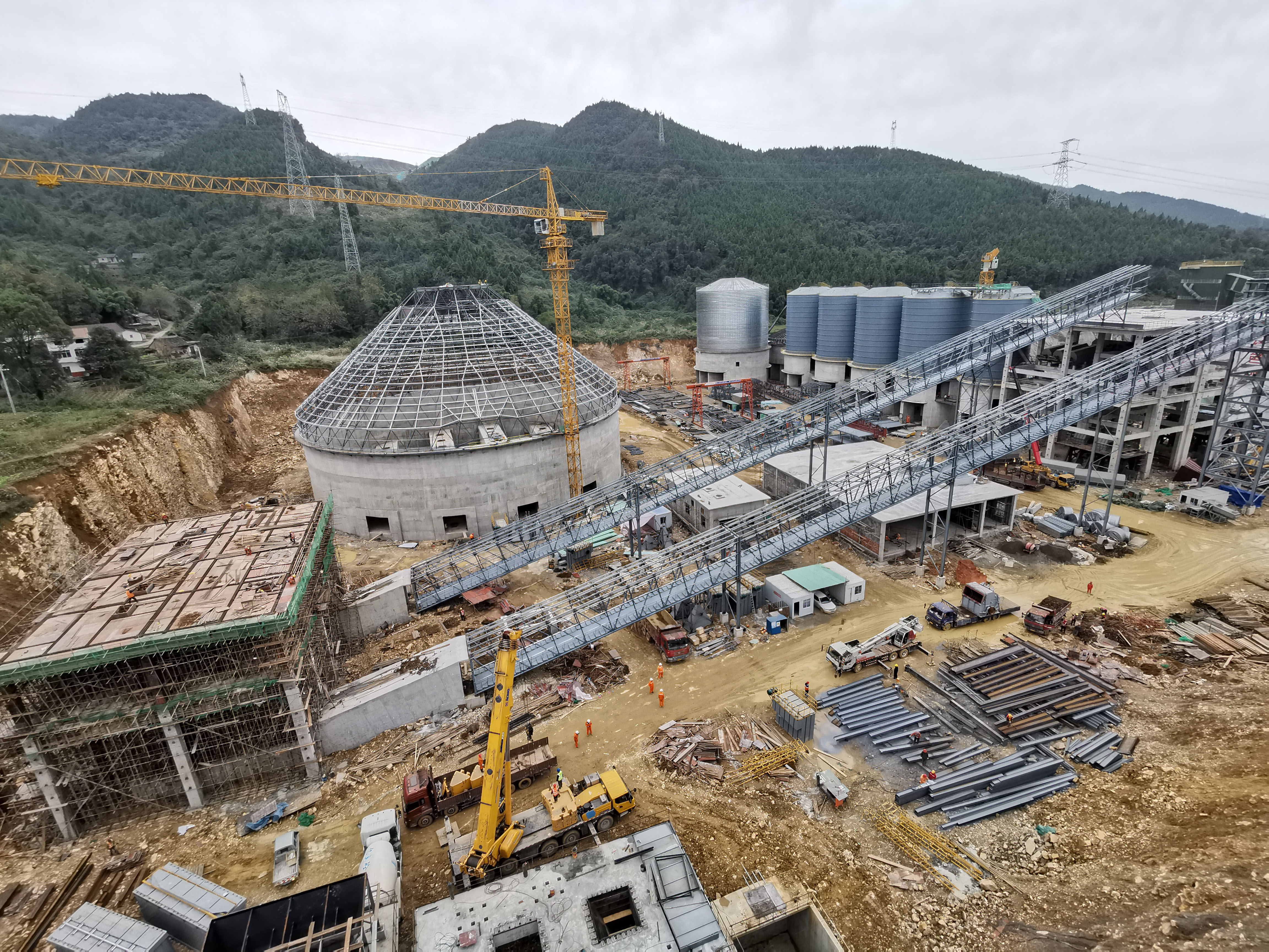截止今日,项目成品储存及发运1#-7#库筒仓、汽车衡、多条输送支架、骨料中转库及各个电气室等子项都已顺利交付给安装单位,最高的制砂框架脚手架也已顺利拆除完成,项目正式进入施工尾期,其施工进度、质量、安全管理得到了业主、监理和后续安装单位的一致好评。